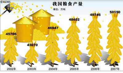 改革开放以来,我国虽然积极开拓利用两种资源、两个市场,但不管经济环境怎样变幻,我国始终不渝坚持以国内为主满足粮食需求、确保国家粮食安全的方针。进入新世纪以来,党和政府更采取了一系列“惠农、兴粮、富民”政策,广大农民种粮生产积极性空前增强,全国农业粮食连续4年增产。2007年,全国粮食总产量超过5亿吨,除大豆外,谷物完全能满足需求。目前中国粮食的对外依存度很低,粮食自给率一直保持在95%以上。同时,我国粮食储备也连续增长,粮食安全系数达到30%以上,远远超过联合国粮食及农业组织(FAO)提出的17%—18%的粮食安全线。