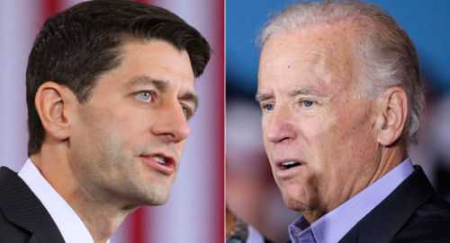 美国共和党副总统候选人瑞安(左)与美国副总统拜登