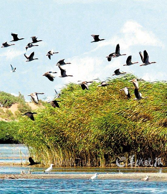 博斯腾湖位于天山中部、巴音郭楞蒙古自治州境内,距博湖县城14公里,是我国最大的内陆淡水湖,水域面积达1640多平方公里,由天山雪水汇集而成。这里水质清澈洁净,适宜各种鱼类生长繁殖,也是白鹭、苍鹭、红嘴鸥、野鸭等众多水鸟栖息的乐园。
