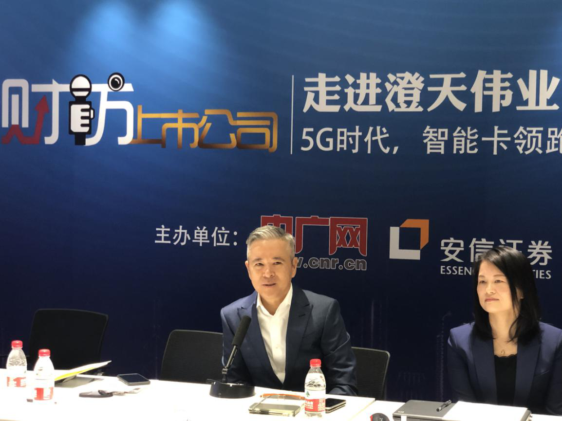 2019年5月7日,由中央广播电视总台央广团队打造的<财访·上市公司>活动来到改革开放前沿阵地——深圳,携手安信证券一同走进<澄天伟业(300689)>公司进行实地调研,与企业高管团队、机构投资者、中小投资者、券商研究员一道解密5G时代下智能卡领跑企业如何更新迭代。