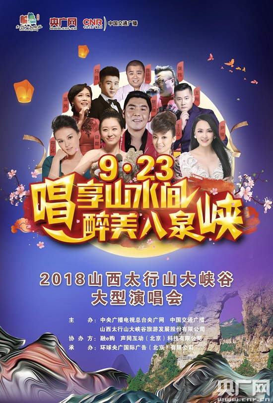 央广网长治9月11日消息(记者 王晓蕾)众星云集、唱享山水间;歌声悠扬、醉美八泉峡。9月23日一场大型演唱会即将在山西太行山大峡谷拉开帷幕,《精忠报国》、《飞得更高》等一系列经典曲目届时将唱响整个八泉峡。高亢的乐曲和悠扬的曲调将向全国乃至全世界传递着八泉峡悠久的历史底蕴和瑰丽的自然风光。