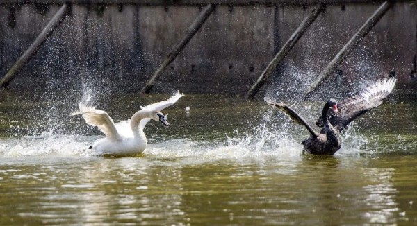 疣鼻天鹅(白色)与黑天鹅
