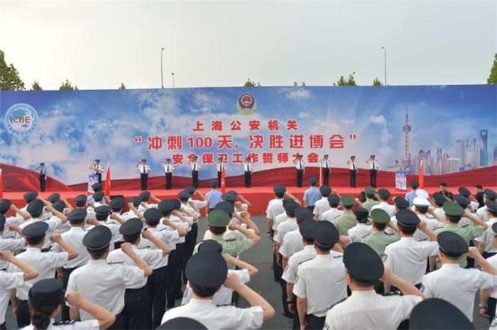 央广网上海7月27日消息(周洪 林馥榆)今天是中国国际进口博览会倒计时第100天。上海公安机关在国家会展中心隆重举行“冲刺100天,决胜进博会”安全保卫工作誓师大会,来自全市各警种、各公安分局的2000余名民警代表参加大会并郑重宣誓。