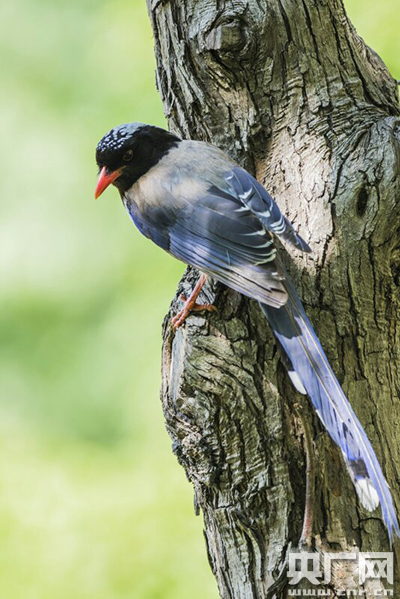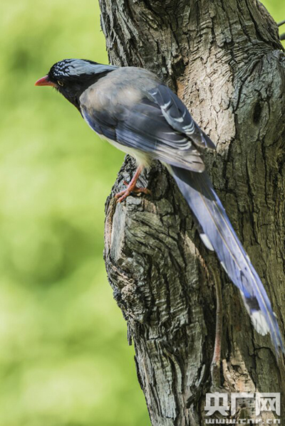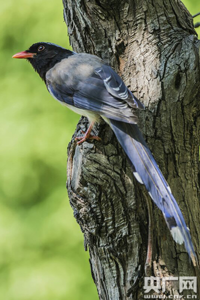 据了解,红嘴蓝鹊又名赤尾山鸦、长尾山鹊,是鹊类中体形较大和尾巴较长、羽色美丽的一种,也是古今花鸟画中常见的主角。红嘴蓝鹊已被列入《国家保护的有益的或者有重要经济、科学研究价值的陆生野生动物名录》,我国东部部分省份已将红嘴蓝鹊列为重点保护鸟类。