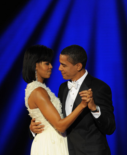 奥巴马夫妇在华盛顿特区举办的一场舞会上露面,两人还在舞会上深情款款的共舞一曲