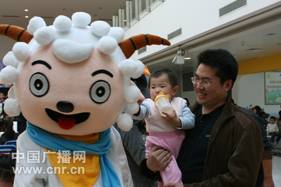 活动现场小朋友和家长争相与喜洋洋合影留念(中广网记者周亮/摄)