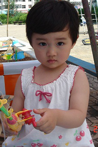 她很精灵,可以因为喜欢的东西和妈妈“讨价还价”,她知道每次妈妈都可以百分百的满足她;她很淘气,喜欢登高上天,可能有了父母的遗传基因,喜欢运动,不知疲倦;她很漂亮,无论走到哪里都会引人注目,她已经多少明白了大人看她时表情里的含义,因为她的脸上有了自信的痕迹;她很聪明,她的记忆力让人吃惊,去过的地方、学过的东西,她都能清晰的记得,而我们早就遗忘殆尽;她很顽皮,会和爷爷、奶奶开玩笑了,每次都会逗得老两口笑眼眯眯;她很“文艺”,只要听到音乐,随时随地都会翩翩起舞,父母的文艺细胞已在她身上生根发芽;她很倔强,为了目标绝不退让,她怎会知道那里包含着母爱的谦让。她叫“妮妮”,一个上天派给我们夫妻的“美丽天使”!