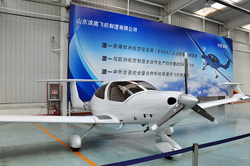 据滨州市高新技术产业开发区副主任、大高镇党委书记商立波介绍,山东滨奥飞机制造有限公司拥有30000平方米的飞机制造厂房,能满从复合材料生产,到飞机零部件加工,再到飞机整机组装等整条生产线的需要。总投资3亿多人民币,设计年生产能力500架。2005年8月,经山东省发改委核准,生产销售DA40型系列飞机。滨奥飞机制造有限公司总经理于广军称,目前飞机销售的群体主要是用于飞行培训和农林防护,目前国内市场税前价格为252万元。