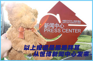 这就是我熊熊拜耳的好梦世博游!晚上回家睡觉的时候脑子里还是世博场馆的影像呢!话说我拜耳那是相当拉风,照相的时候围观的群众是人山人海,还好摄影大哥对我疼爱有加,让我高高兴兴的完成了拍摄任务,现在真是松口气了。不过,由中广网为大家带来的心爱玩偶好梦世博游还没结束,和我同行的几个小伙伴早就迫不及待的要出镜了!我把机会留给他们吧!大家继续关注>>>留言请进 |