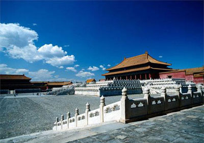 故宫为明、清两代(公元1368~1911年)的皇宫,依照中国古代星象学说,北极星位于中天,乃天帝所居,天人对应,故宫又称紫禁城。明代第三位皇帝朱棣在夺取帝位后,决定迁都北京,公元1406年即开始营造宫殿,至明永乐十八年(公元1420年)落成。1911年,辛亥革命推翻了中国最后的封建帝制——清王朝,1924年清逊帝爱新觉罗·溥仪被逐出宫禁。在这前后五百余年中,共有24位皇帝曾在这里生活居住和对全国实行统治。城内宫殿建筑布局沿中轴线向东西两侧展开。红墙黄瓦,画栋雕梁,金碧辉煌。殿宇楼台,高低错落,壮观雄伟。朝暾夕曛中,仿若人间仙境。在封建帝制时代,普通的人民群众是不能靠近它一步的。