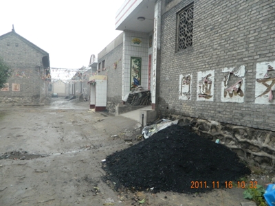 农户领取的煤堆积在门口 因质量问题无法正常燃烧(田华摄) |
