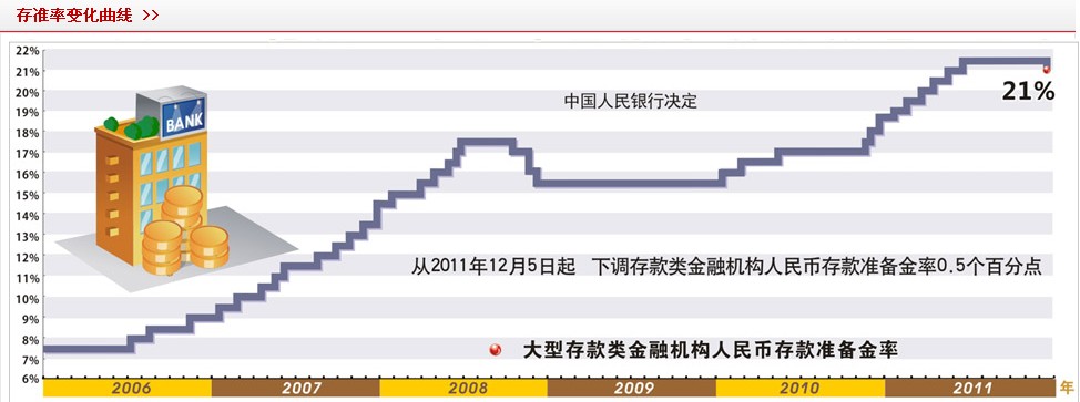 中国人民银行11月30日宣布,从12月5日起,下调存款类金融机构人民币存款准备金率0.5个百分点。 这是央行近3年来首次下调存款准备金率。央行上次下调存款准备金率时间为2008年12月25日。自2010年以来,央行12次提高存款准备金率。其中,2011年共有6次上调存款准备金率。 在央行此次下调存款准备金率后,大型银行存款准备金率降为21%。以10月末金融机构人民币存款余额79.21万亿元简单推算,本次下调存款准备金率可释放近4000亿元资金。市场人士认为,下调存款准备金率释放出重要的政策信号,央行“预调微调”操作空间打开,对证券市场将产生积极影响。 【详细】 |