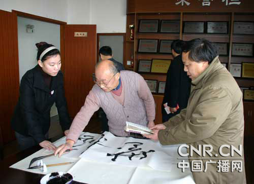 南京建邺南苑街道社区服务中心内,老人们挥毫弄墨,不亦乐乎。