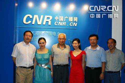 中央人民广播电台副总编辑杜嗣琨、中国广播网副主任伍刚、主持人等与做客中国广播网的刘先林院士和中国测绘科学院副院长赵继成合影