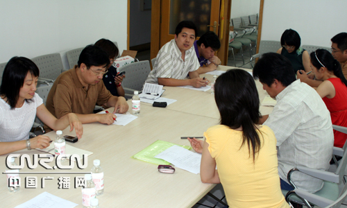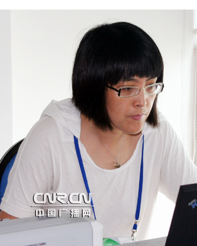 青岛人民广播电台新闻频道副总监李雪蓉正在浏览短信平台的听众留言。