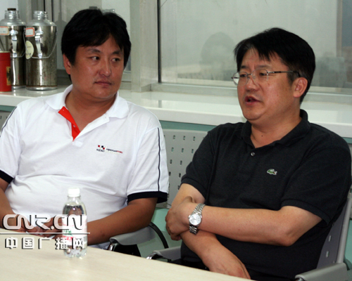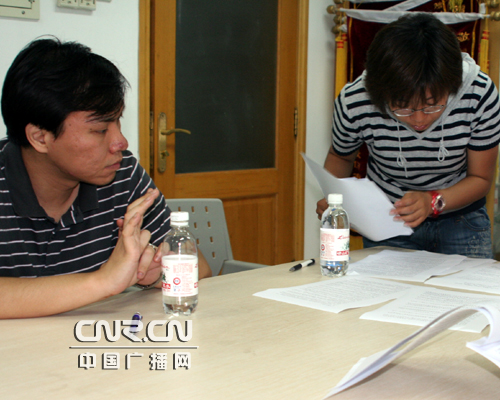 中央人民广播电台青岛记者站刘华栋(左)与青岛人民广播电台副总编辑王玮在交流直播细节。