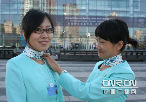 记者在门口受到了礼貌而仔细的检查并登记证件之后,方才被允许进入会场。记者看到,本次年会的全体大会场地——二楼多功能厅的座椅已经摆放完毕,天蓝色的靠背整齐划一与蓝色的天花板十分协调。巨大的舞台上背景已经安放完毕。位于三楼的新领军者之村也已经装修完毕,米色的地毯、分割合理的展位、翠绿的装饰竹子令这里气氛轻松、生机勃勃。新领军者之村的展位包括大连、深圳、西安等城市展区,也包括英特尔、万达等国内外知名企业。