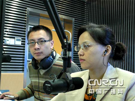 12月4日,中央人民广播电台中国之声联合司法部以及12家省市电台推出法制宣传日特别节目《2007,我们与法同行》。司法部法宣司副司长姜金芳(左)、中国人民大学法学院教授叶林做客特别节目。 中广网记者朱卫东 摄