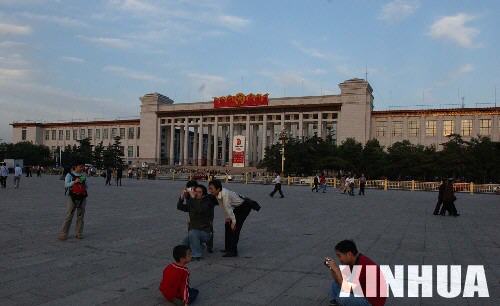 9月25日,游人在中国革命和中国历史博物馆前拍照留念。北京天安门广场东西两侧的中国革命历史博物馆(今中国国家博物馆)和人民大会堂等建筑是新中国建立初期建成的“十大建筑”,它们当时成为古老北京城的新地标,而现在正在迈向国际大都市的新北京汇集了众多全球知名建筑师的作品,几乎成了一座“世界建筑博物馆”。 新华社记者 李文 摄