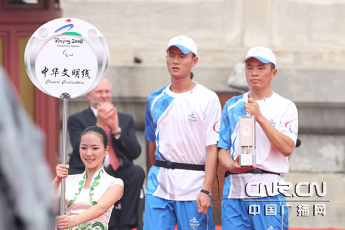 北京2008年残奥会火炬接力开始.8月28日,北京残奥会圣火采集暨火炬接力启动仪式在北京天坛祈年殿南广场举行。中广网记者邱翔 陈钟摄