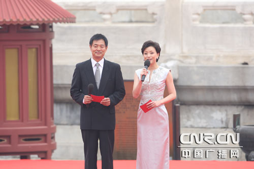 主持人濮存昕、杨澜登。8月28日,北京残奥会圣火采集暨火炬接力启动仪式在北京天坛祈年殿南广场举行。中广网记者邱翔 陈钟摄