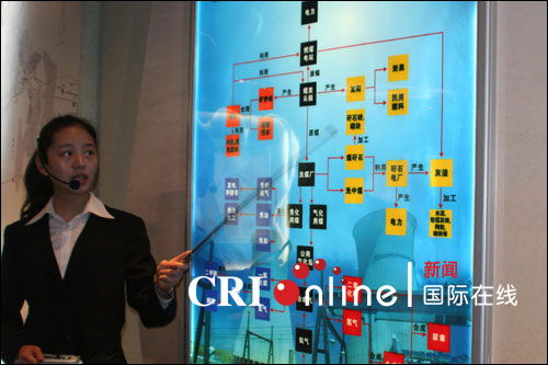 工作人员在讲解宁东能源化工基地的产业运作流程。循环经济让这个能源基地走上低污染、高效益的发展快车道。