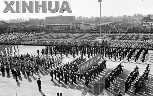1978年10月25日,银川市十万各族人民隆重集会游行,热烈庆祝宁夏回族自治区成立20周年。新华社记者摄