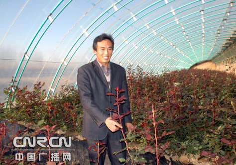 新疆伊宁县农村马国旗在自家出口玫瑰种植大棚里