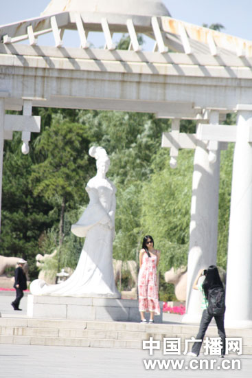 位列中国古代四大美人之一的昭君引得游人与其塑像合影