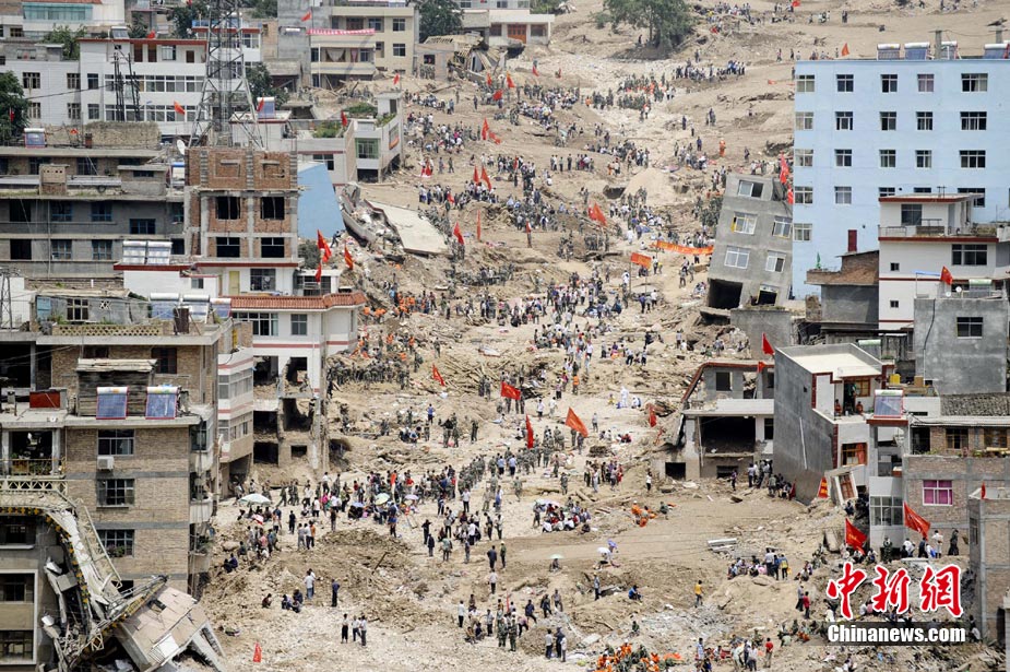 8月10日,甘肃舟曲泥石流灾区布满全力救援的人员。甘肃省甘南藏族自治州州委书记陈建华8月9日22时在新闻发布会上通报,截至当时,据不完全统计,灾情涉及2个乡镇10个行政村,其中重灾村6个。经全力救援,已经救援出1242人,仍有1148人失踪。中新社发 廖攀 摄