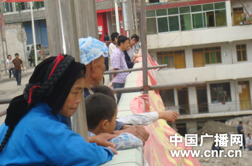 藏族阿妈凝神看官兵施工 郭海涌摄