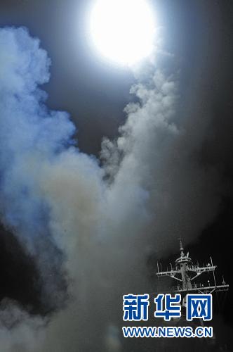 这张美国海军提供的照片显示,3月19日,美国海军“巴里”号导弹驱逐舰向利比亚发射“战斧”巡航导弹。美军参谋部主任威廉·戈特尼19日说,部署在地中海的美军和英军军舰与潜艇当天向利比亚发射了上百枚“战斧”巡航导弹,袭击了利比亚的20多处防空设施。新华社/美联