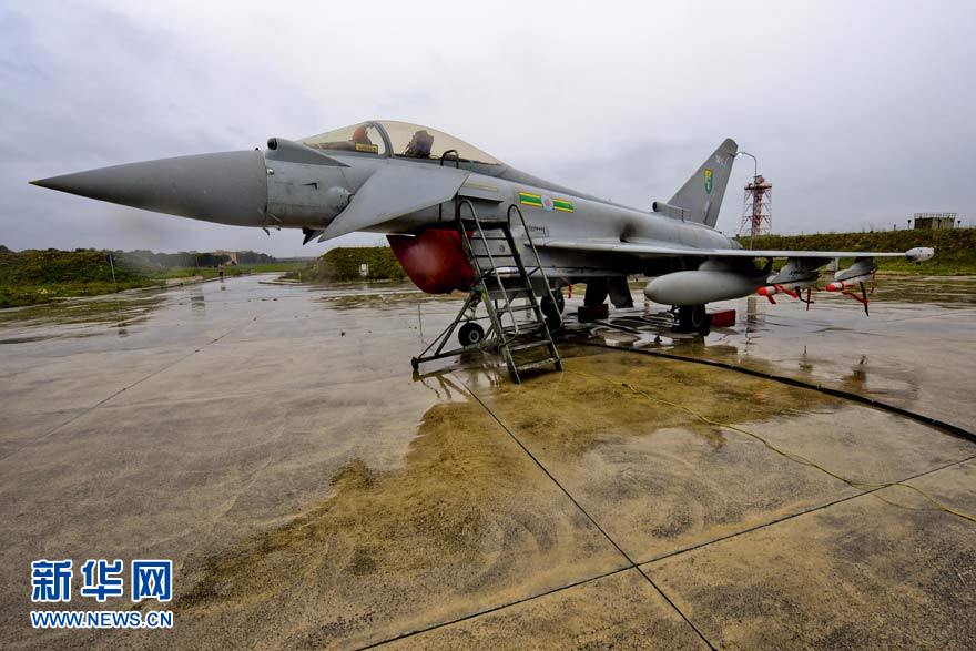 这张英国国防部3月21日提供的照片显示,一架英国空军台风式战斗机停在意大利南部的焦亚-德尔科莱基地,准备参加对利比亚的军事行动。新华社发