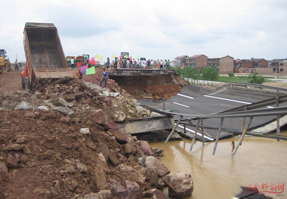 直击江西洪灾现场:道路断裂 房屋被浸