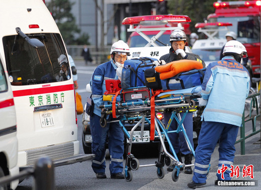 日本近海3月11日发生了强烈地震,首都东京震感强烈。日本气象厅随即发布了海啸警报,称地震将引发约6米高海啸。图为东京消防部队救援官兵抵达一处天花板损坏的会馆开展救援工作。