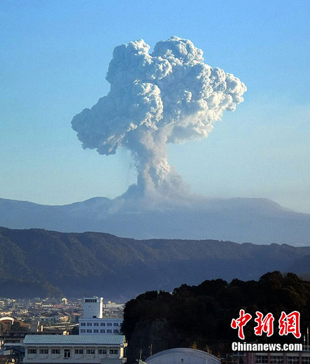 位于日本宫崎县和鹿儿岛交界处的雾岛山新燃岳火山(海拔1421米)2月1日上午第4次喷发。(资料图片)