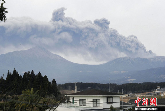 1月26日,日本雾岛新燃岳火山发生大规模喷发,喷发出来的浓烟高达1500米。(资料图片)