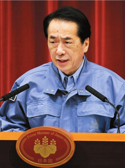3月12日,日本首相菅直人在东京首相官邸发表讲话。新华社/日本共同社