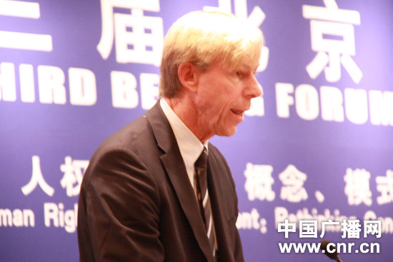 中广网北京10月19日消息(朱虹)联合国人权高专办地区行动与技术合作司司长安德尔斯·孔巴斯19日在第三届北京人权论坛上表达了对中国人权建设的赞赏,他说,中国不仅可以在本国实现人权,还可以帮助世界上的其他国家。
