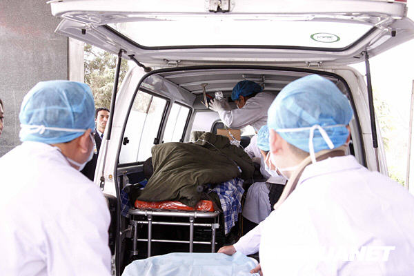 4月5日,一名获救矿工被救护车送到山西河津市人民医院接受治疗。当日,华晋焦煤王家岭矿“3·28”透水事故第二批获救矿工陆续升井,被送往医院接受救治。新华社记者 高学余 摄