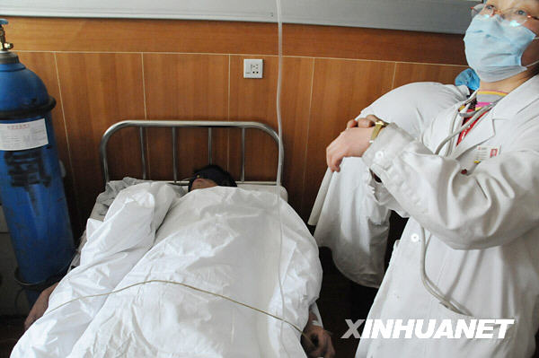 4月5日,一名获救矿工在山西铝厂职工医院接受治疗。当日,华晋焦煤王家岭矿“3·28”透水事故第二批获救矿工陆续升井,被送往医院接受救治。新华社记者 吕晓宇 摄