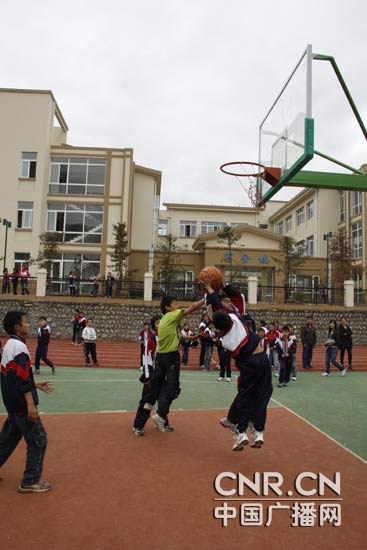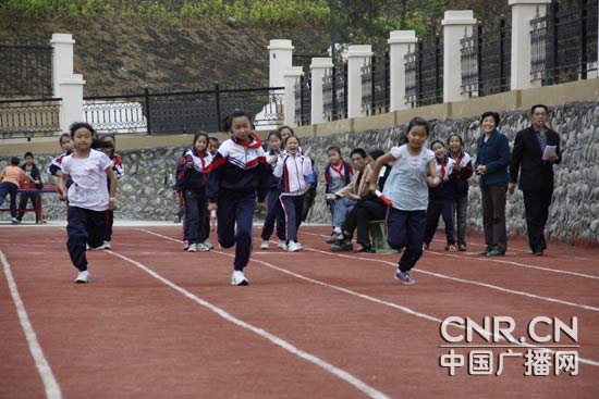 学生们在操场进行体育活动(中广网记者陈江南 摄)