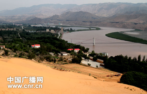 从中卫沙坡头景区望去,黄河与沙漠完美交融,令人叹服。