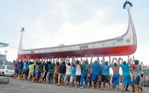雅美族近百年首艘18人大船“拜访号”打造完成正式下水,29日启航,展开近800公里航程。