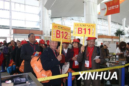 资料图片:首个近千人大陆赴台旅游团取道厦门――金门的小三通航线赴台观光旅游,游客们正准备通关。