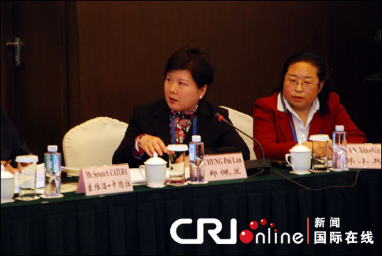 香港人权专家(左)在分组讨论中发言 孙亚萍/摄