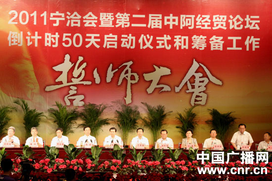 2011宁洽会暨中国与阿拉伯国家经贸论坛进入50天倒计时誓师大会昨天上午在宁夏人民会堂隆重举行。自治区的主要领导和各部门各地方负责同志及新闻媒体、大会服务人员、自愿者代表参加了誓师活动。