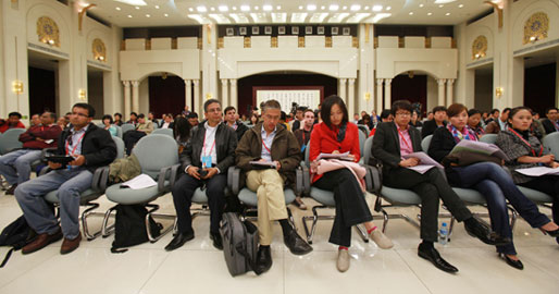 第二届中阿经贸论坛筹备新闻发布会现场各国记者