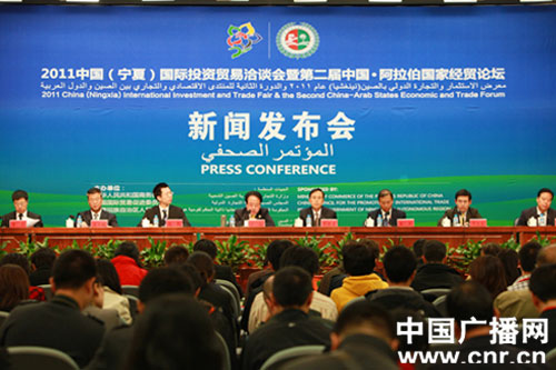 2011中国(宁夏)国际投资贸易洽谈会暨第二届中国·阿拉伯国家经贸论坛筹备工作新闻发布会9月20日在银川举行。(中广网记者 马玲艳摄)