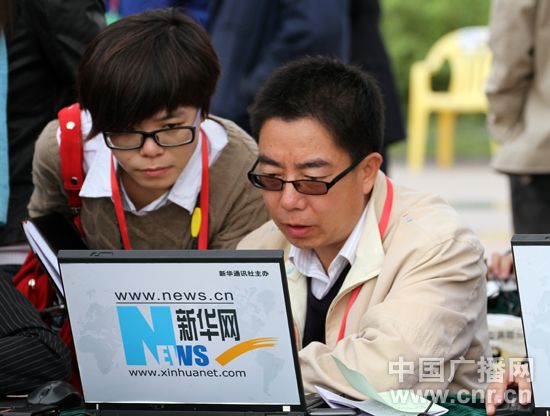 新华网记者正在做会前准备